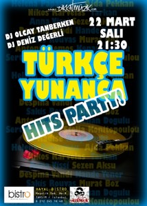 “Türkçe-Yunanca Hits Party!”, 22 Mart’ta Hayal Bistro’da