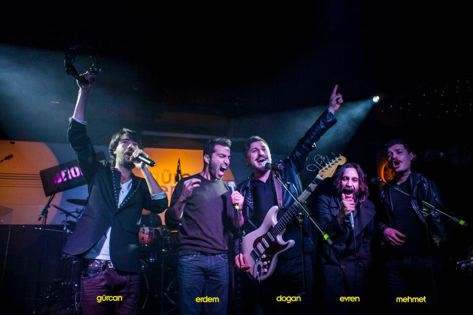 Bu arada Gürcan Ersoy konserine devam ediyordu. Türkiye’nin köklü gruplarından M.F.Ö ile İzmir, Eskişehir ve İstanbul’da aynı sahneyi paylaştı. M.F.Ö gibi önemli bir grubun dinleyicisi karşısında şarkı söylemek herhalde ” rüya gibi bir etki bırakmıştır” diye düşünüyorum. Bence en önemli konserlerinden biri de Turborg Gold Fest sahnesinde olması oldu. Bir çok sevilen ve bilinen grupla aynı sahnede yer aldı. Yakın zamanda Bronx pi‘de gerçekleşen konserinde ise seyircisi için harika sürprizler hazırlamıştı. Gürcan Ersoy’u dinlerken bir de baktık ki;  Redd grubunun solisti Doğan Duru sahnede bu süper ikili bizlere Redd’in  “Hayat Kaçık Bir Uykudur” albümünden “Ellerini Kaldır” şarkısını söylediler. Ardından bir şarkı daha  söyleyeceklerdi. Doğan Duru gitarı çalmaya başladı ve sahneye teker teker rock yıldızları düştü. Gürcan Ersoy ve Doğan Duru şarkıyı söylemeye başladığında ilk Erdem Yener, ardından Foma grubunun solisti Evren Uysal ve hepimizin bildiği, sevilen fotoğrafçı Mehmet Turgut sahnedeki yerini aldı. Herkes için çok keyifli bir gece oldu. 24424_10151406237681171_221068658_n
