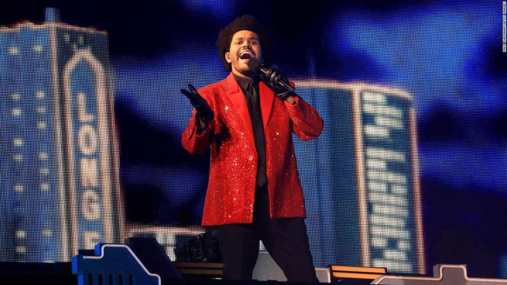 The Weeknd’in performansı da tahmin edilebileceği üzere büyük bir görsel şölen olmuş. Yaklaşık 15 dakika sahne almış ve Can’t Feel My Face, I Feel It Coming, Earned It ve son zamanlarda en çok dinlenen popüler parçası Blinding Lights olmak üzere toplam dokuz parça seslendirmiş. Sahneye büyük bir platform kurulmuş ve bu platformda koro ve orkestra yer almış. Açılışta koro ile görkemli bir giriş yapan The Weeknd ilk üç parça sonrasında platformun içine girerek insanlarla dolu kalabalık bir kargaşa içinde Can’t Feel My Face parçasını söylüyor. Sonrasında platformun tepesine çıkıyor ve I Feel It Coming’i seslendiriyor. Son iki parçasında da devasa sahaya inerek yüzlerce dansçının içinde bir performans sergileyerek Blinding Lights parçası ile konseri son buluyor.