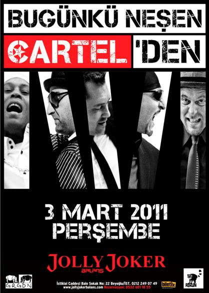 15 yıl aradan sonra geçtiğimiz haftalarda yayınladıkları Bugünkü Neşen Cartel’den albümü ile müzik dünyasına hızlı bir dönüş yapan Cartel, 3 Mart’ta Jolly Joker Balans’taki ilk konserlerini vermeye hazırlanıyor. Biletler Biletix‘te..